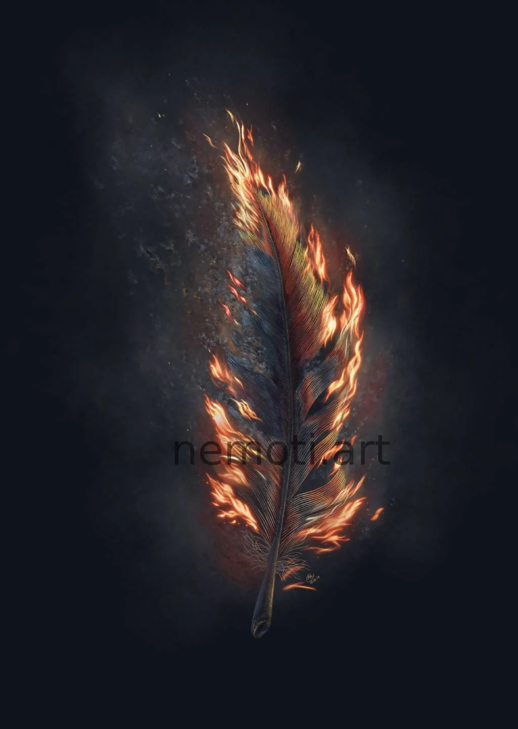 Zwischen den Bäumen, die nur noch verkohlte Gerippe waren, bewegte sich etwas. In einer sehr weichen, untypischen Art. Kein Tier, kein Mensch – ein Schatten, gezeichnet aus Feuer und Rauch. Mengen an Rauch und Asche schien es zu umhüllen, doch bei näherem Blick formte sie ein Wesen mit Federn aus Glut und seine Bewegungen wie Wind in brennendem Laub.